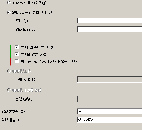 此版本的 Microsoft Windows 不支持 MUST_CHANGE 選項。 (Microsoft SQL Server,錯誤: 15195)